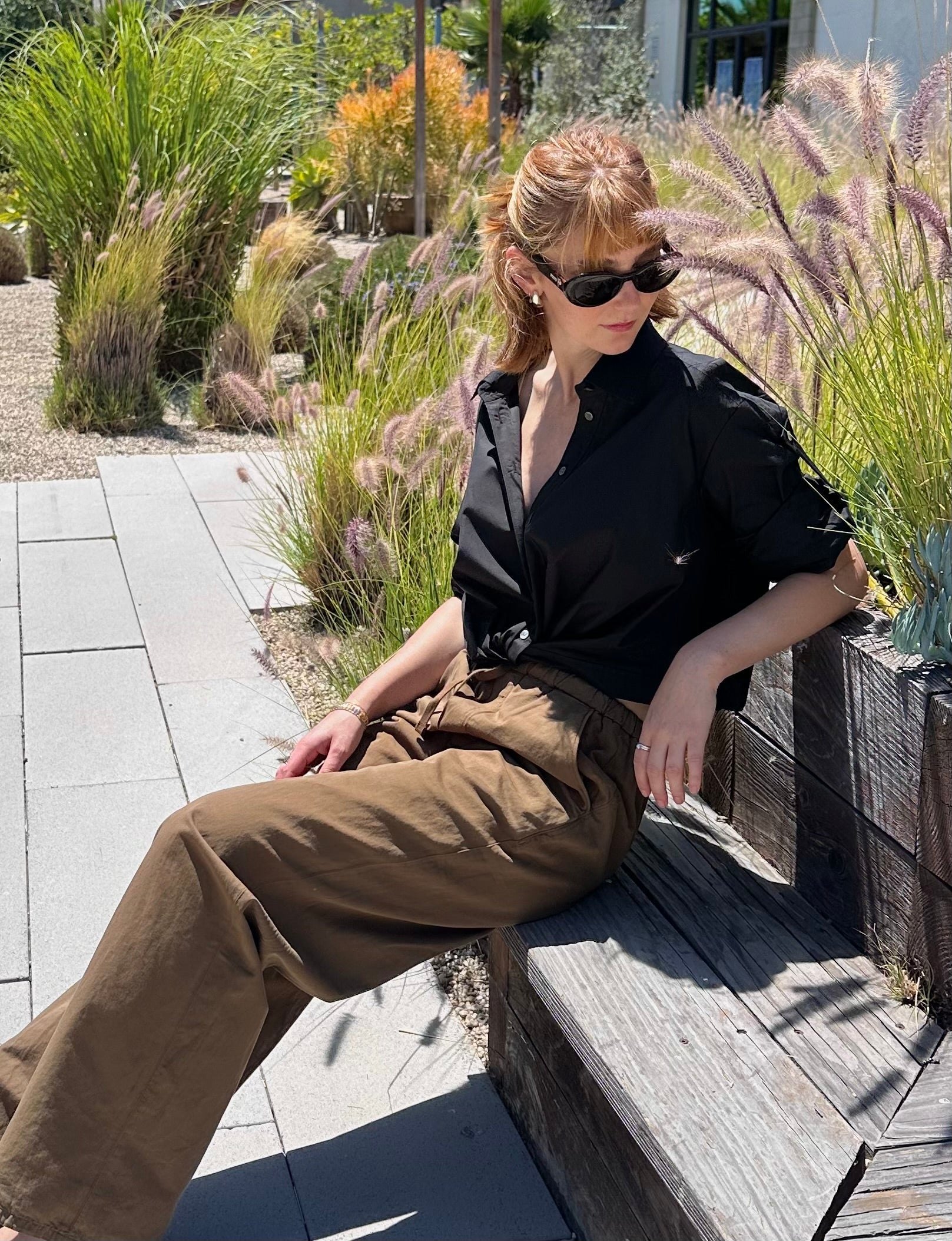 • Cropped button down blouse