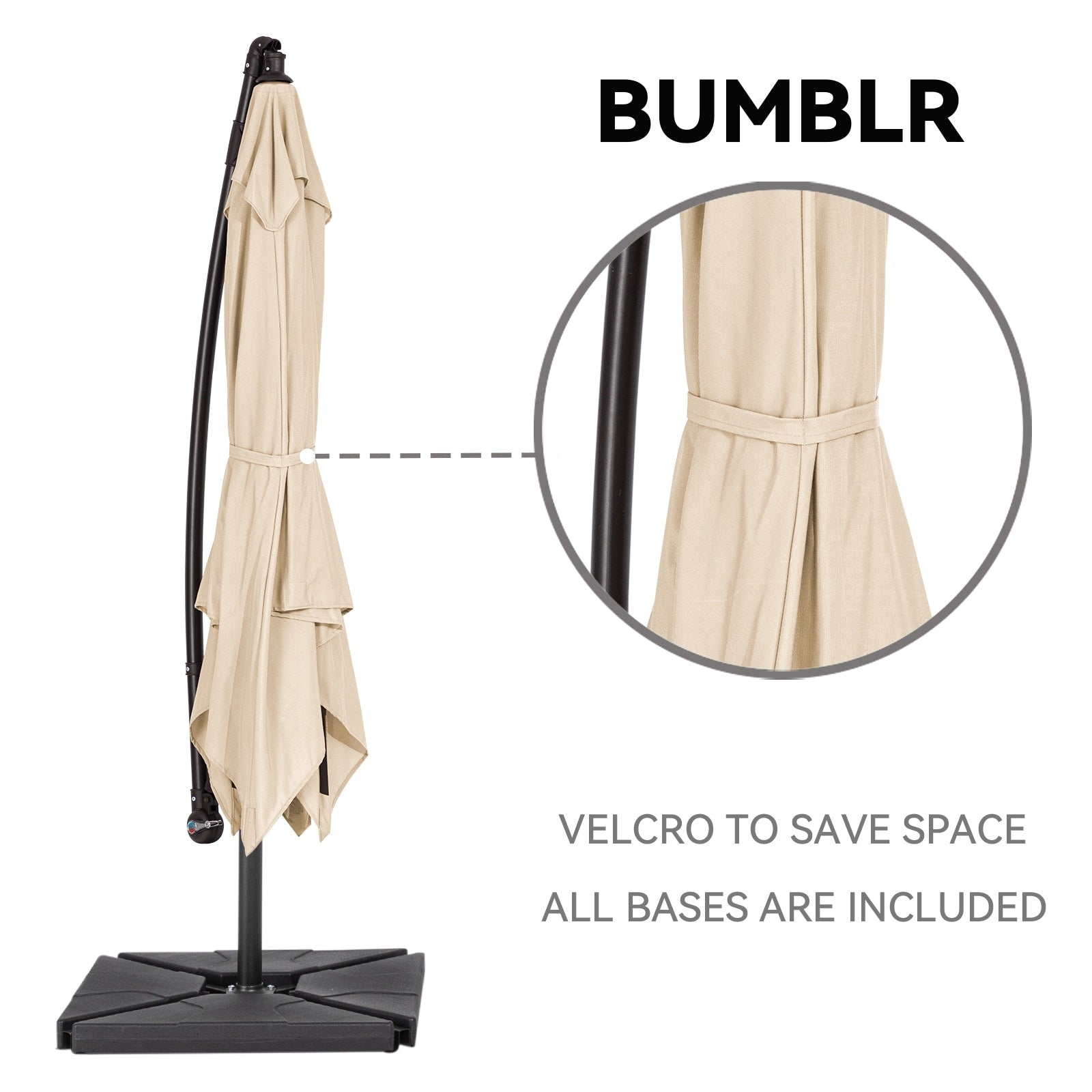- Weighted Base Included:100 lbs Base Included, the base hits 100 lbs when filling with wet sand, so there's no worry about delaying your use because finding another suitable base