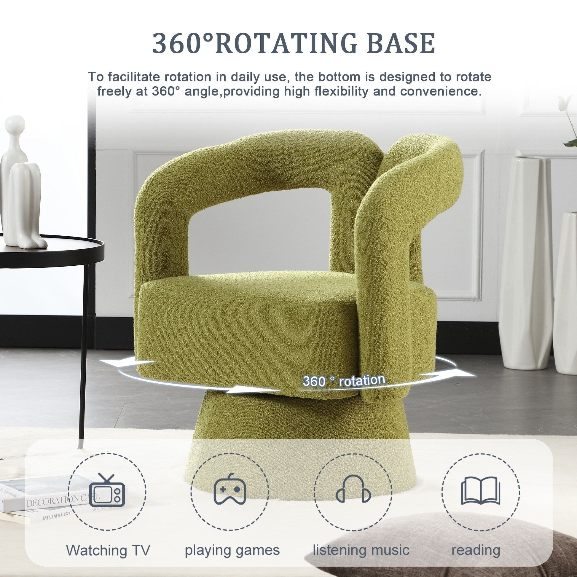 HOMEFUN Boucle Upholstered 360 Degree Swivel...