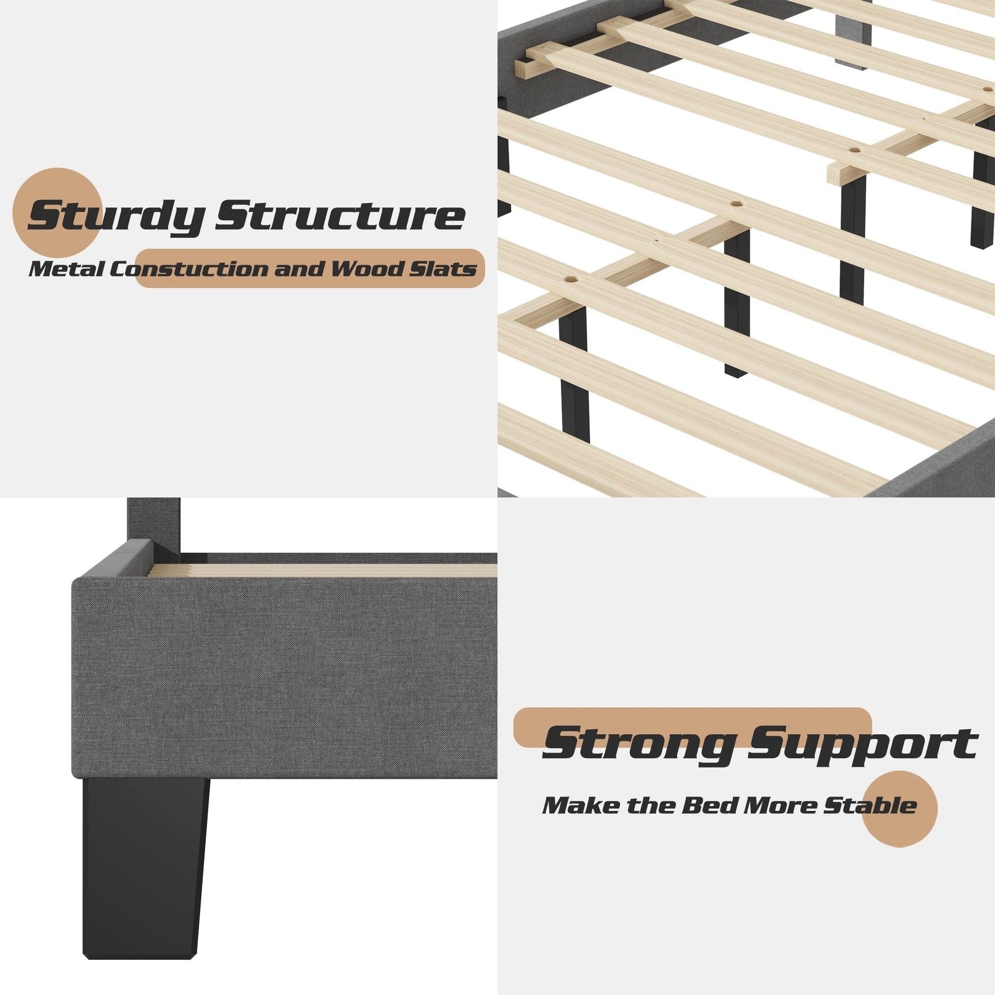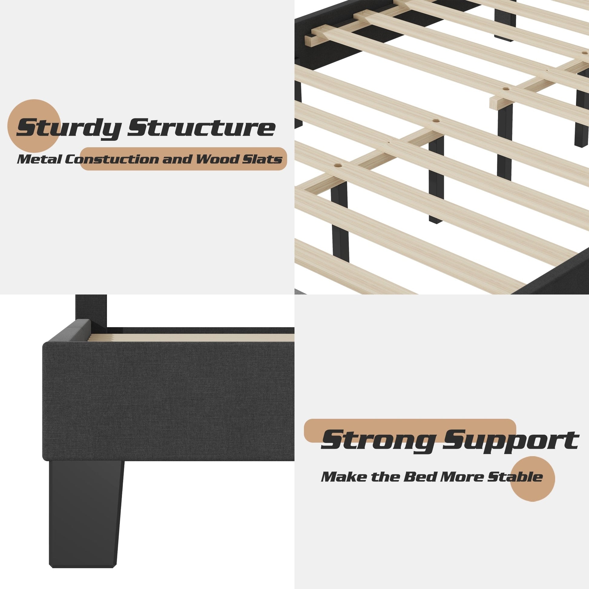 Lifezone Adjustable Queen Size Upholstered Platform Bed Frame
