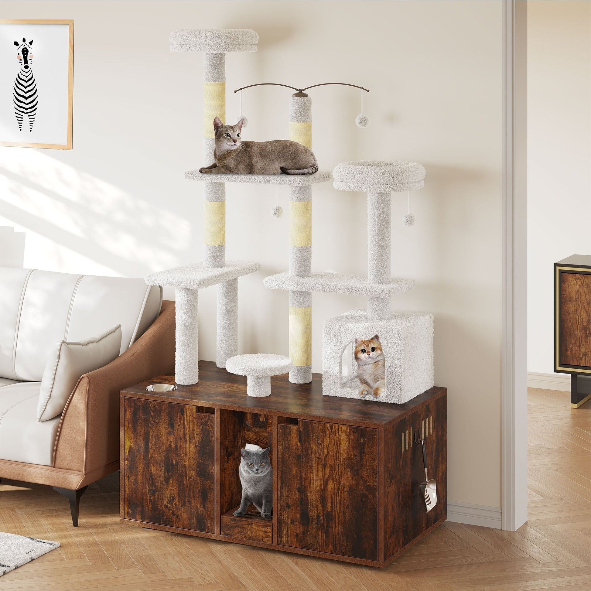 Moasis Double Cat Litter Box Enclosure with Scratching...