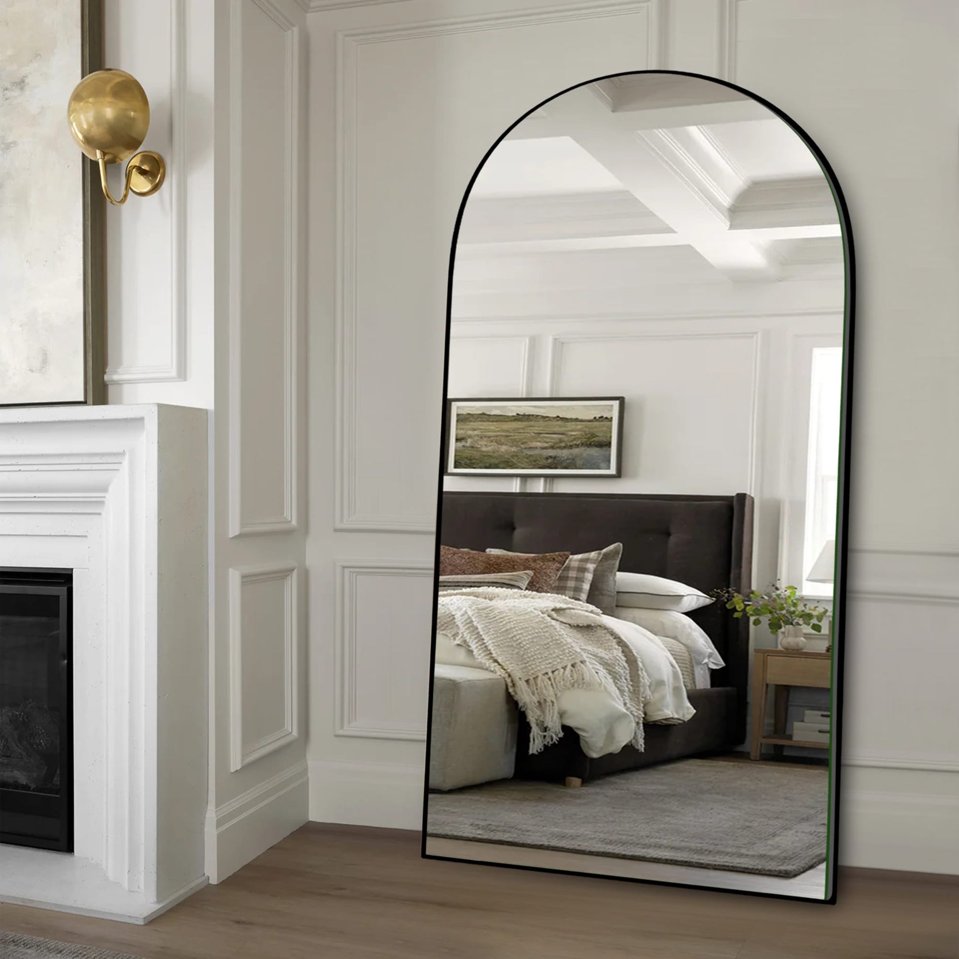 The modern arched full-length mirror is an essential element in home decoration. From a distance, it looks like a door or a window, making it more artistic and highlighting the beauty of the body mirror. At the same time, the arched design can visually elevate the ceiling and enhance the transparency of the space It can also enhance the indoor lighting ability, create a unique and exquisite space aesthetic feeling, shape the space atmosphere, and effectively improve the taste and grade of the entire interior space. Its exceptional quality is highlighted by an affordable price point, offering you a remarkable value for your investment. Order now to transform your home with this remarkable mirror!