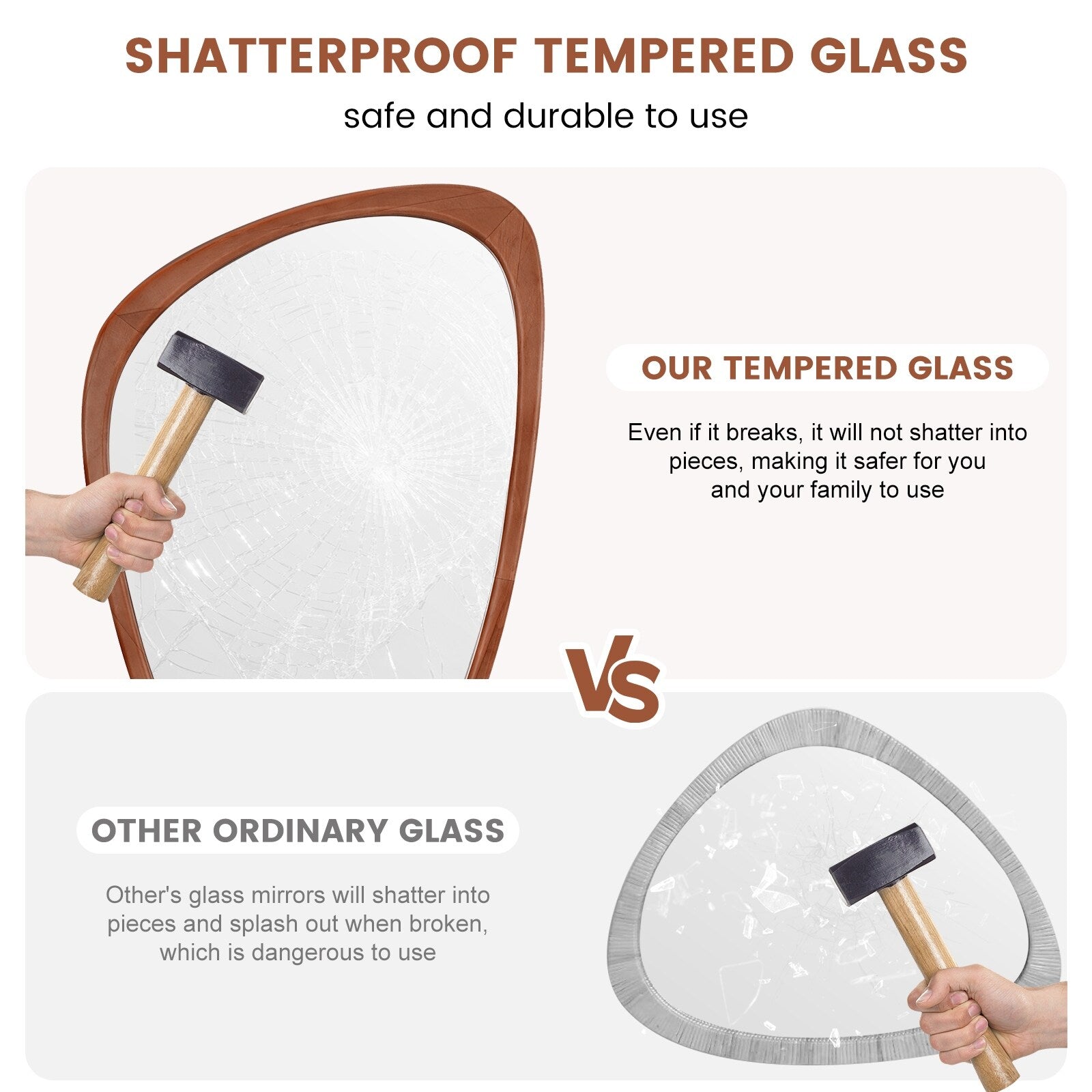 • This unique mirror with an irregular shape is perfect for adding a touch of art to your living space. It's suitable for various areas of the home, like the living room, bedroom, bathroom, hallway, or entryway.