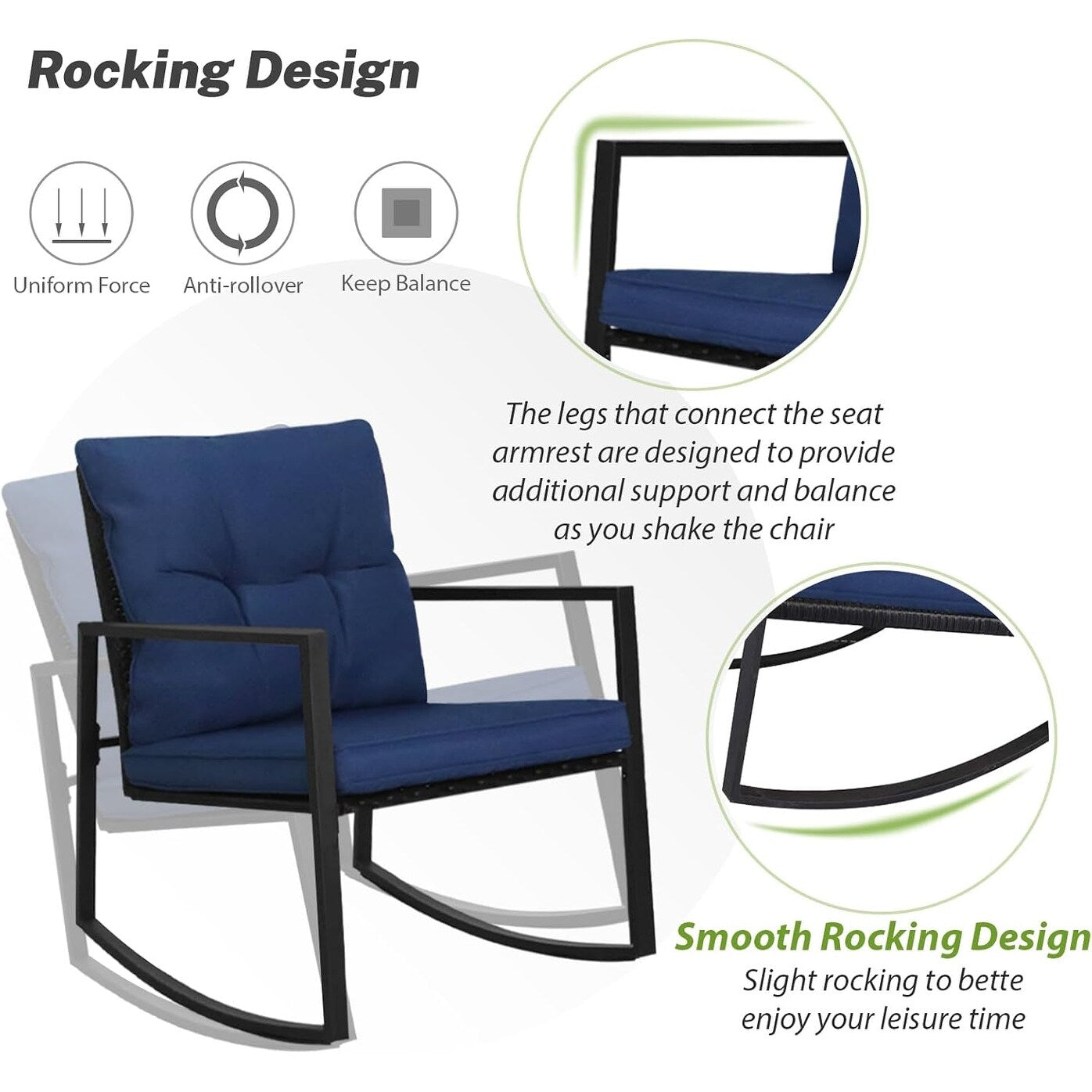 Relax in style with the SUNCROWN Outdoor 3-piece Rocking Wicker Bistro Set. This durable set includes two cushioned rocking chairs and a square coffee table, all crafted with an iron frame and woven PE wicker. The chairs feature polyester fabric cushions with sponge padding in various colors with zippered covers. With a contemporary design and black finish, this set complements any decor.